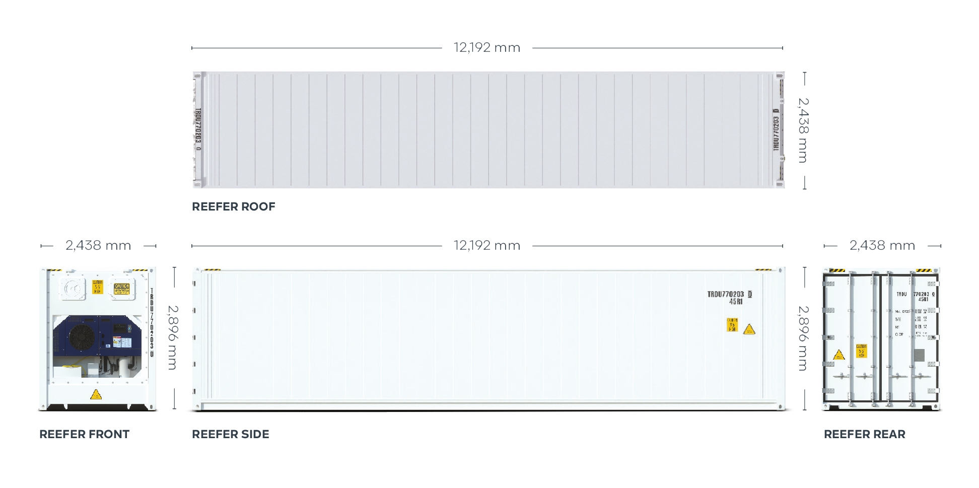 With 1ft more height than a 40ft Reefer and a comprehensive internal capacity of 2,387ft³, new 40ft High Cube Refrigerated Containers are designed to securely store and transport large volumes of cargo requiring a set temperature between -30°C and +30°C*, including food, beverages and temperature-sensitive equipment. By maximizing their larger capacity, companies with more extensive cold storage requirements can potentially benefit from transport and storage cost savings when purchasing 40ft units rather than smaller models, as fewer units would be required to hold the same volume of goods.